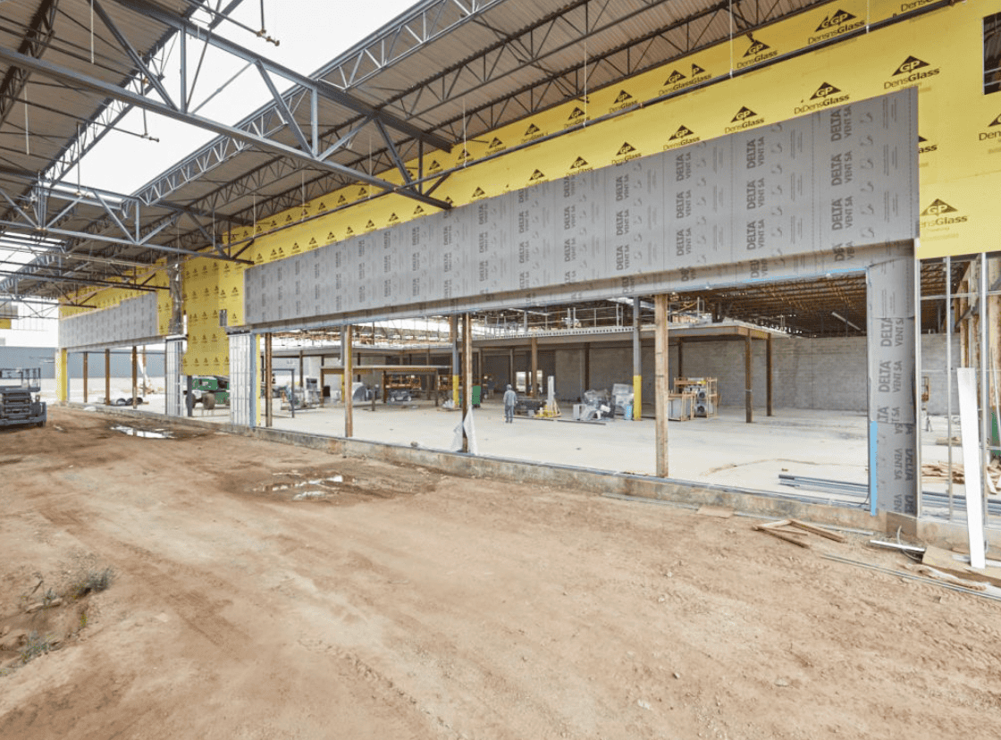 The Budds’ dealership, located just west of Toronto, was constructed with excellence in mind. To ensure the building matched the high standards of the vehicles it houses, the project team—led by Chart Construction Management and supported by subcontractor Sobotec—chose DELTA®-VENT SA as the cornerstone of the building’s exterior wall system. This high-performance membrane was applied across the entire dealership, delivering unmatched protection and efficiency.