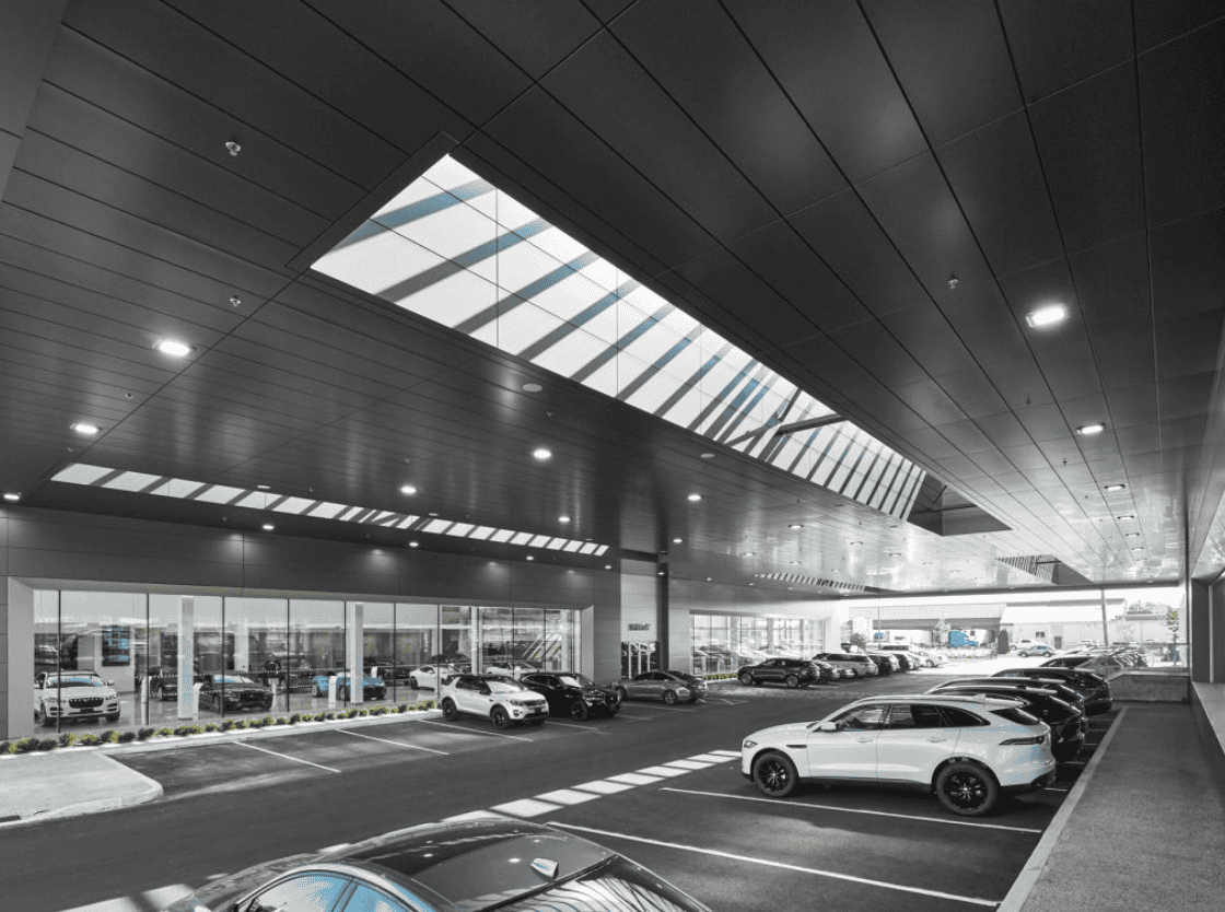 When it comes to luxury vehicles, the experience extends beyond the cars themselves—it’s about the environment where they’re showcased. Budds’ Jaguar and Land Rover Dealership in Oakville, Ontario, exemplifies this with its stunning 80,000 sq. ft. facility, completed in 2018. This state-of-the-art automotive retail space, designed by R.H. Carter Architects Inc., not only reflects the prestige of the Jaguar and Land Rover brands but also showcases the cutting-edge performance of DELTA®-VENT SA, a game-changing product from Dörken Systems Inc.