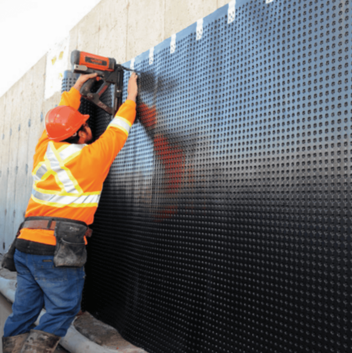 Benefits for home builders include eliminating hydrostatic buildup behind walls, preventing water damage in planters, plaza decks, or balconies, and easy integration with existing waterproofing. Contractors love the simple installation—butt joints with fabric overlaps ensure seamless coverage without gaps.