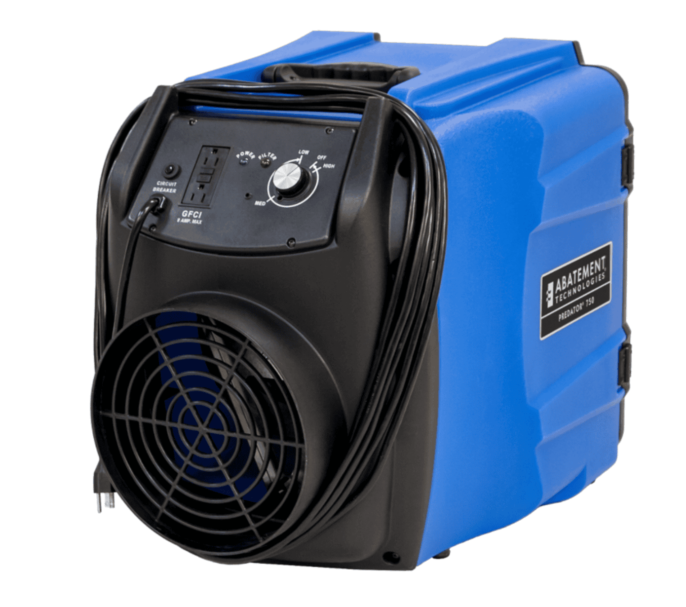 An Air Scrubber recirculates air within a space to clean it. A Negative Air Machine is ducted to exhaust air outside the containment area, creating a vacuum (negative pressure) that prevents dust from escaping. Most high-end units, like the Abatement Technologies Predator series, can perform both functions depending on how they are ducted.