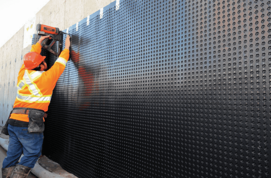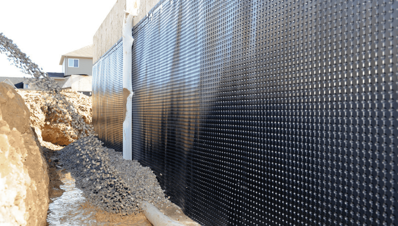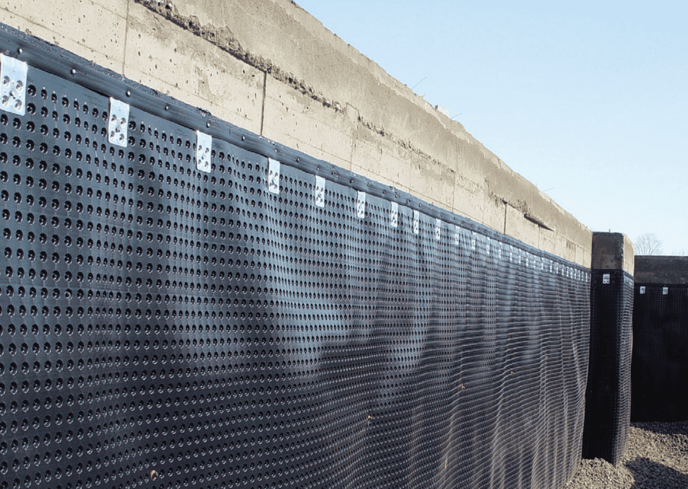 Platon acts as both. It is a waterproof barrier that prevents soil moisture from touching the wall, and it is a drainage membrane that uses an air gap to channel liquid water to the drainage tile.