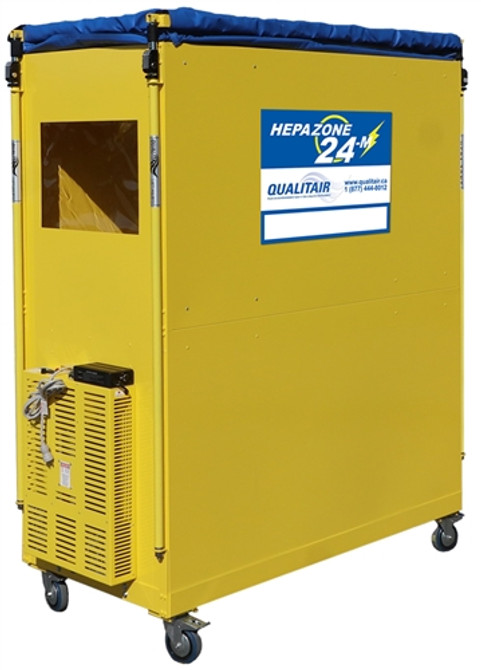 The Qualitair HepaZone HZ-M is a portable and collapsible battery powered HEPA filtered negative pressure work enclosure. The practical solution to carry out minor jobs without risk of site contamination with ASBESTOS, MOLD, SPORES, etc. The HepaZone 24M transforms ceiling work application into a negative pressure work zone. It protects the surrounding environment from harmful, and nuisance dust.